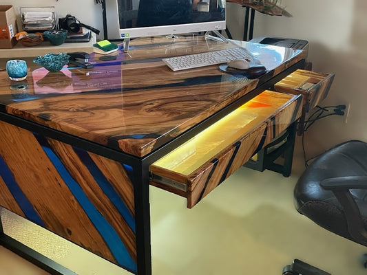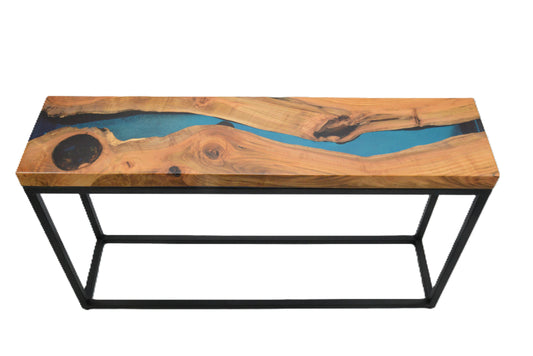 Salvaged Cherry and Blue River Epoxy Sofa/Console Table/Limited Edition