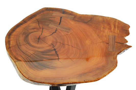 Saved from rotting or burned for firewood, these pieces are repurposed with attention to detail and form and function. Each piece carries the R Squared Brand burned into the underside of each table. Each table is truly one-of-a-kind from a finite source and therefore all are in limited production.